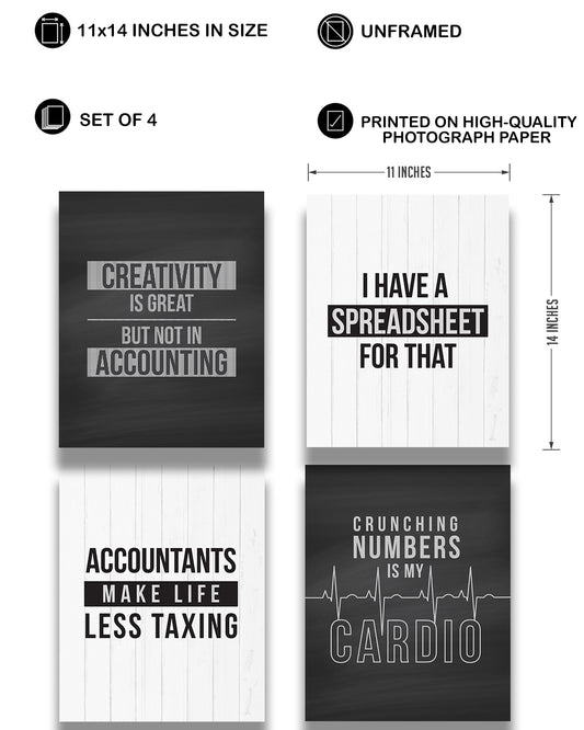 Accounting Gifts Room Decor - Set of 4 Fun Office Decor - Great Wall Art Gift for Accountants CPA, Graduation, New Job, Student
