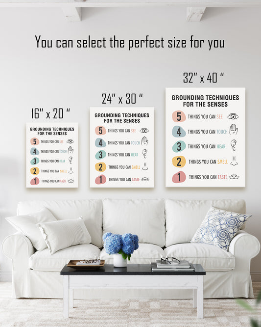 Grounding Techniques for the Senses - Wall Decor for Therapy Office - Mindfulness Wall Decor - Counseling Office - Mental Health Wall Art - School Psychologist, Therapist