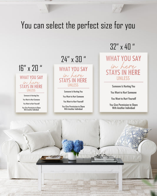 What You Say In Here Stays In Here - Wall Decor for Therapy Office - Mindfulness Wall Decor - Counseling Office - Mental Health Wall Art - School Psychologist, Therapist